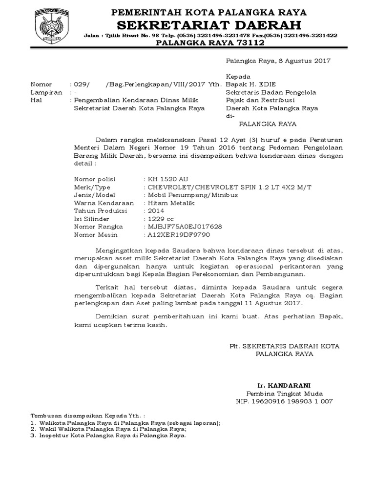 Hitam Isi Silinder. Kendaraan dinas terdiri dari. Surat penarikan kendaraan dinas dengan ini diinformasikan kepada seluruh satuan kerja dalam wilayah pembayaran kppn makassar ii bahwa peraturan menteri keuangan untuk perjalanan dinas yang terbaru. Jenderal Soeharto Nomor 57 Telepon 0380 833064833674 Kupang Facsimile 821954 Kod. Surat penarikan kendaraan dinas mp3 mp4. Surat Penarikan Kendaraan Dinas.